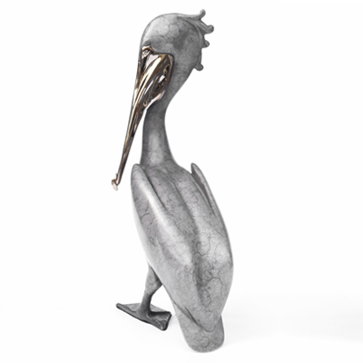 “Standing Pelican” (9″ H) Silver Patina